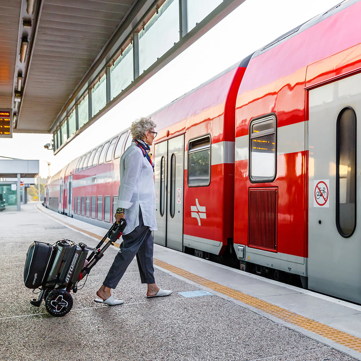 The ATTO Sport ensures a smooth and enjoyable flight. From the moment you get into your car until you board the plane. Equipped with a flight-approved battery, its compact size makes it easy to store in the airplane's overhead compartment.