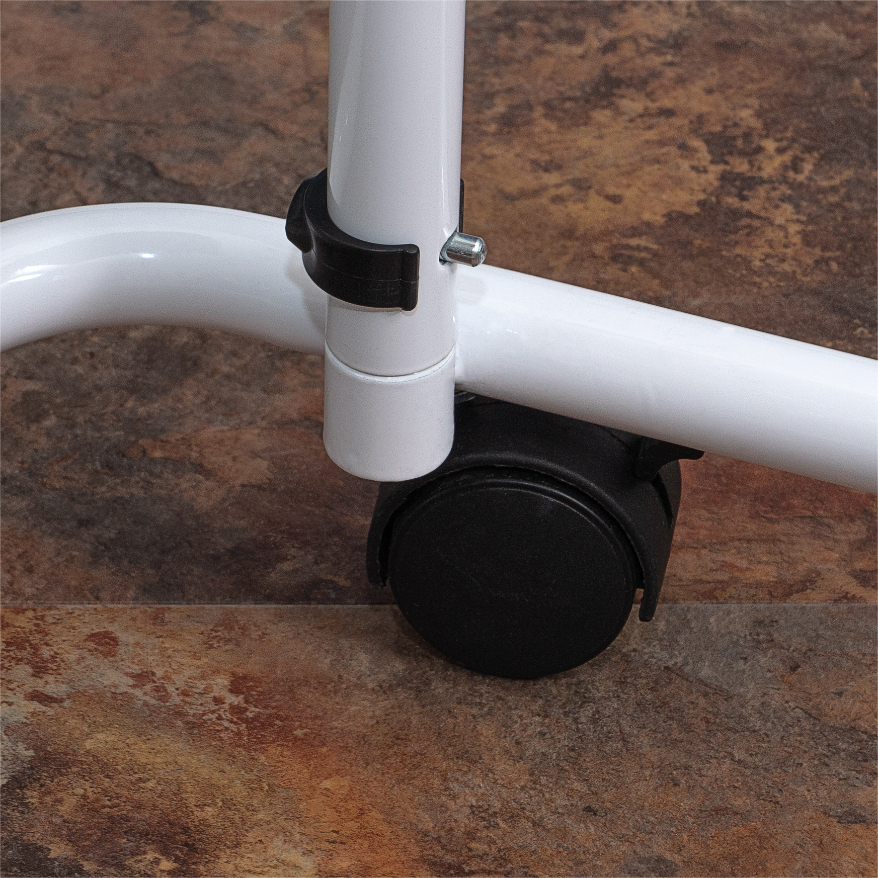 Hij is verkrijgbaar met vier vergrendelbare zwenkwielen.