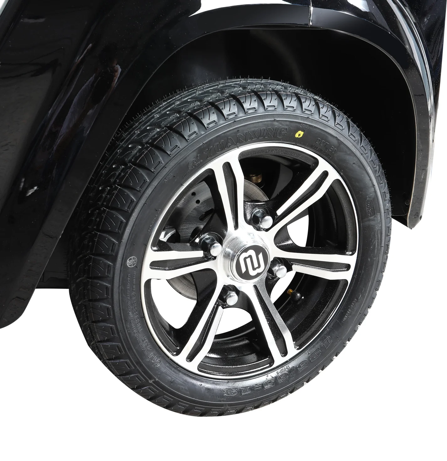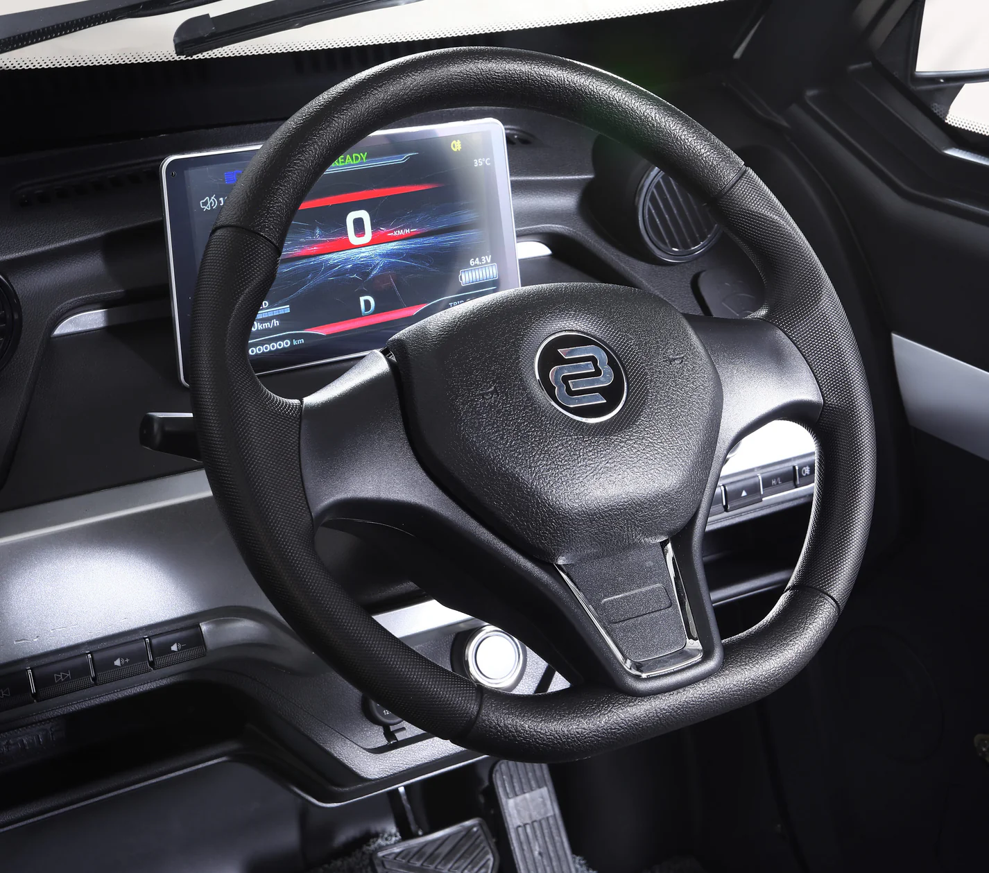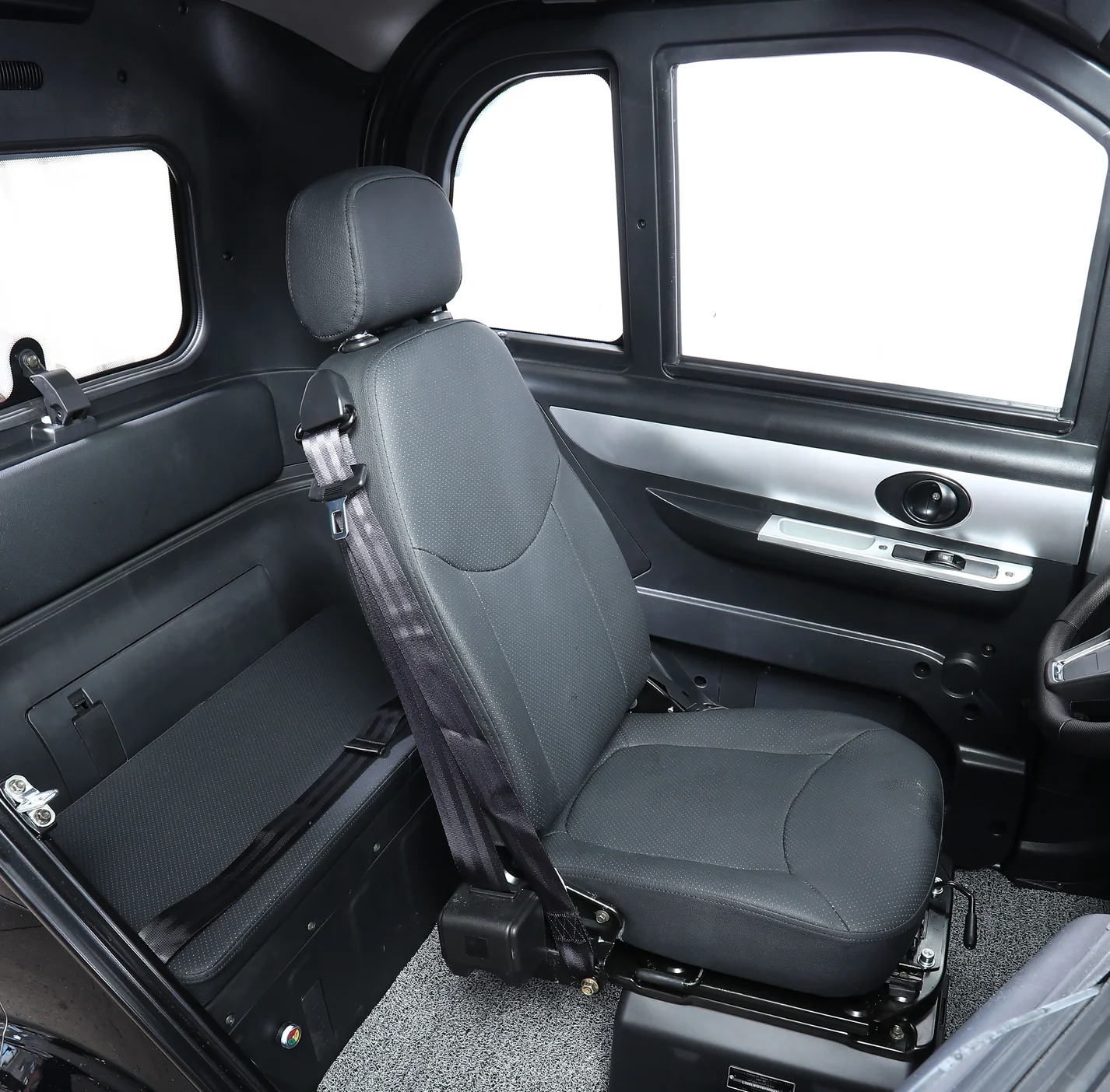 Compact aan de buitenkant, verrassend ruim vanbinnen. Dankzij de wielbasis van 1540 mm en de breedte van 1090 mm voelt de Cura zeker aan, maar blijft hij handig in krappe straten en parkeerplekken. Parkeren? Zo gepiept. Weer of geen weer? Stap in, rits dicht en gáán.