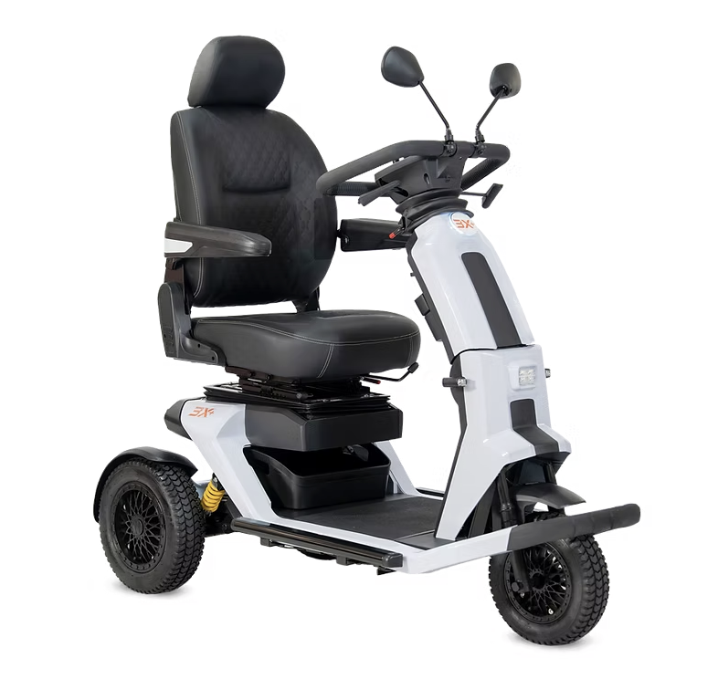 De Excel 3X+ combineert de wendbaarheid van een driewiel scootmobiel met de extra’s die u van een topmodel mag verwachten. Dankzij het compacte ontwerp manoeuvreert u moeiteloos, terwijl de grotere achterwielen en uitgebreide functies zorgt comfort, ook tijdens langere ritten.