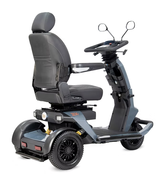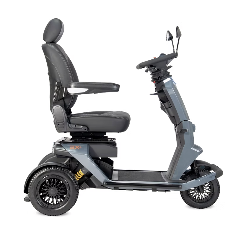 De bredere stuurkolom ligt comfortabel in de hand en is naar voren en achteren verstelbaar voor een optimale rijhouding. Daarnaast beschikt de 3X+ over dubbele bediening, waardoor u zelf kiest of u de bediening aan de zijkant of onderzijde gebruikt. Dit zorgt voor maximale controle en gebruiksgemak.