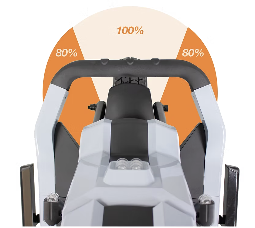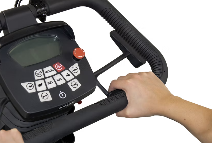 De bredere stuurkolom biedt extra grip en is verstelbaar naar voren en achteren voor de ideale rijhouding. Dankzij de dubbele bediening kiest u zelf of u de bediening aan de zijkant of onderzijde gebruikt – volledig afgestemd op uw persoonlijke voorkeur.