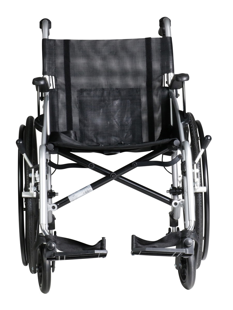 - De rolstoel is voorzien van een half neerklapbare rugleuning, waardoor hij zeer compact wordt en moeiteloos in bijna elke auto past.