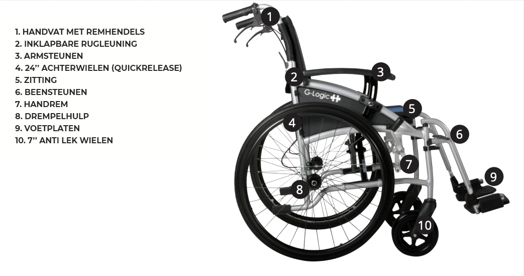 - Met een gewicht van slechts 11,5 kg is de G-Logic een super lichtgewicht rolstoel die gemakkelijk te hanteren is.