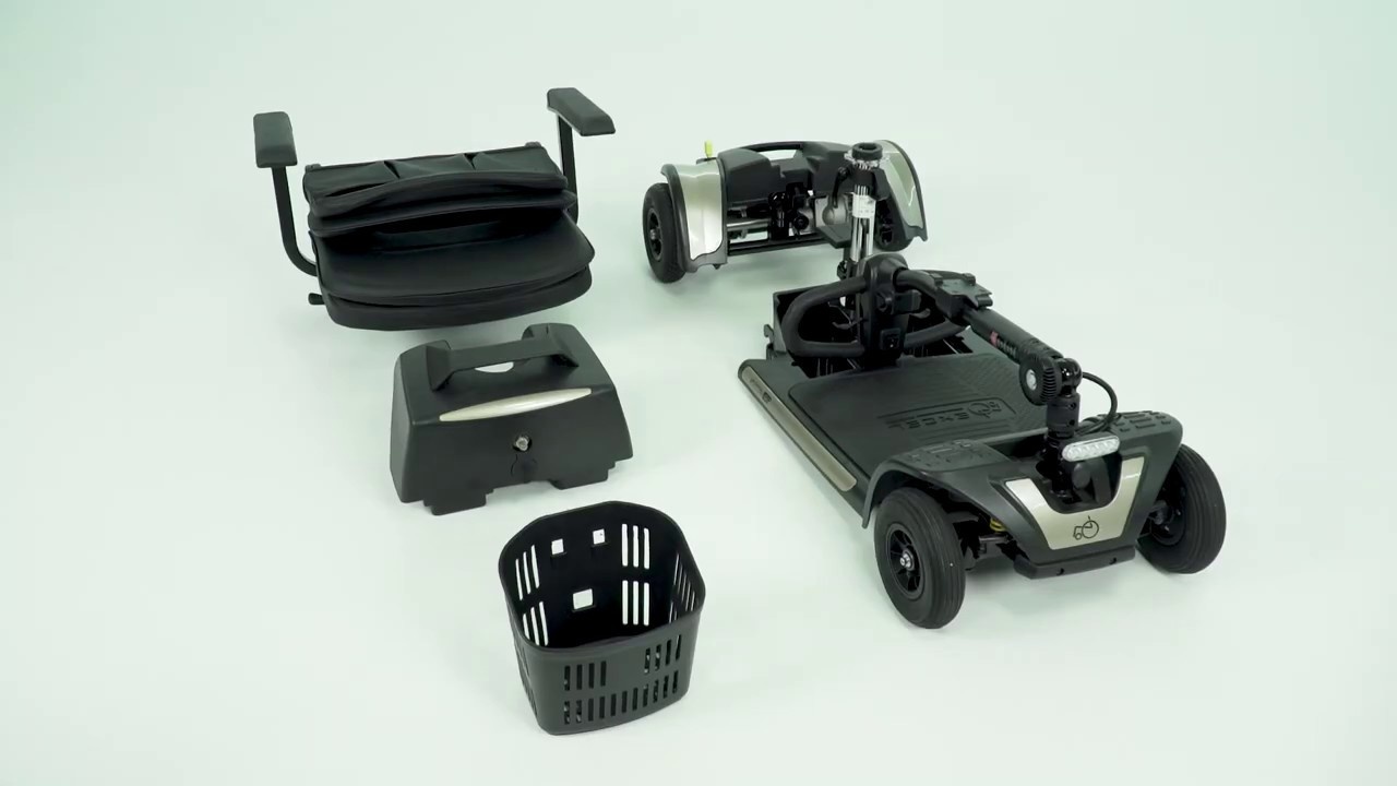 De Opvouwbare scootmobielExcel Xena 4is demontabel in vijf losse delen, zodat de travelscooter eenvoudig in de kofferbak van vrijwel iedere auto kan worden meegenomen.