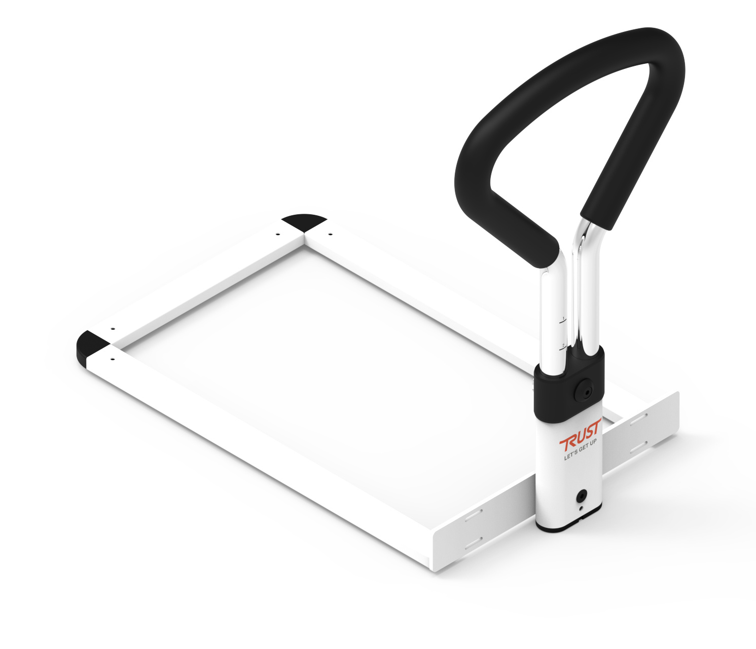 De Let's Get Up is eenvoudig te installeren en aan te passen aan verschillende soorten meubilair.De hoogte van de handgreep en het klemsysteem kunnen eenvoudig worden ingesteld met de bijgeleverde inbussleutel.De bodemplaat van 8 kg zorgt voor extra stabiliteit.