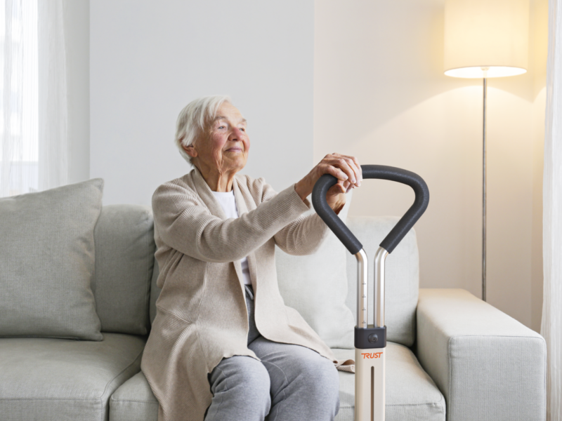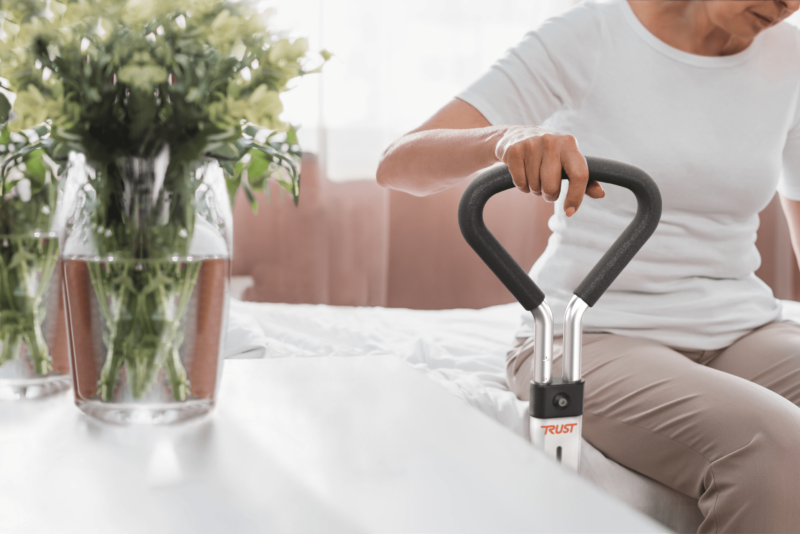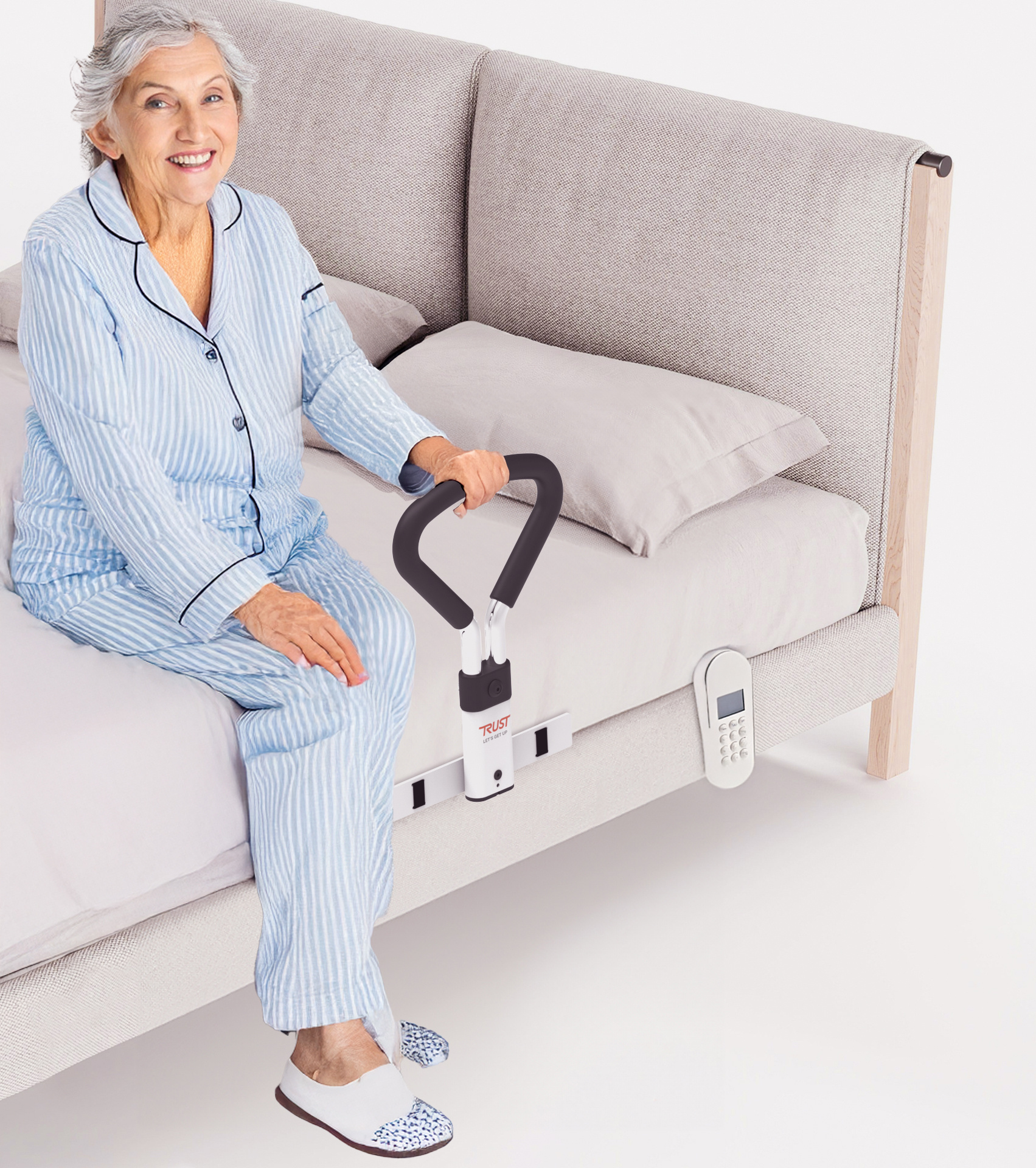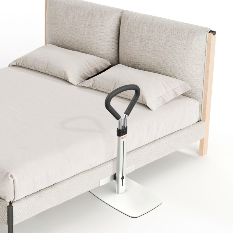 De Let's Get Up is een innovatieve en veilige opstaphulp die ondersteuning biedt bij het opstaan uit bed, sofa of fauteuil.Bekroond met de Red Dot Design Award, combineert dit hulpmiddel functionaliteit met een stijlvol ontwerp.