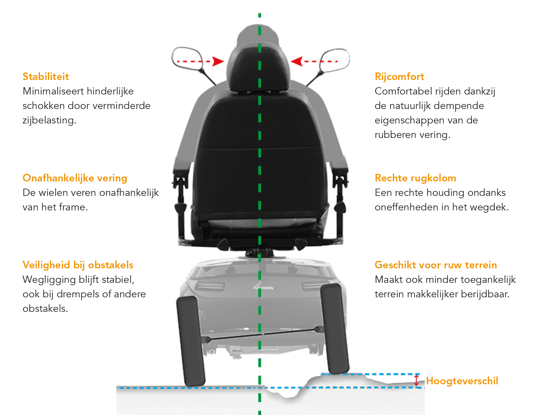 - Kantelbare Vooras: Zorgt ervoor dat de wielen altijd contact houden met het wegdek.