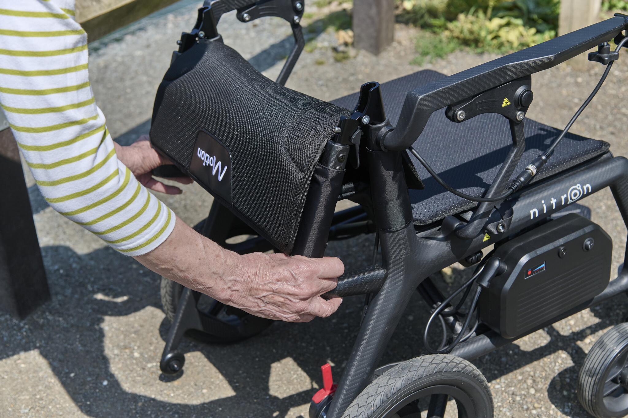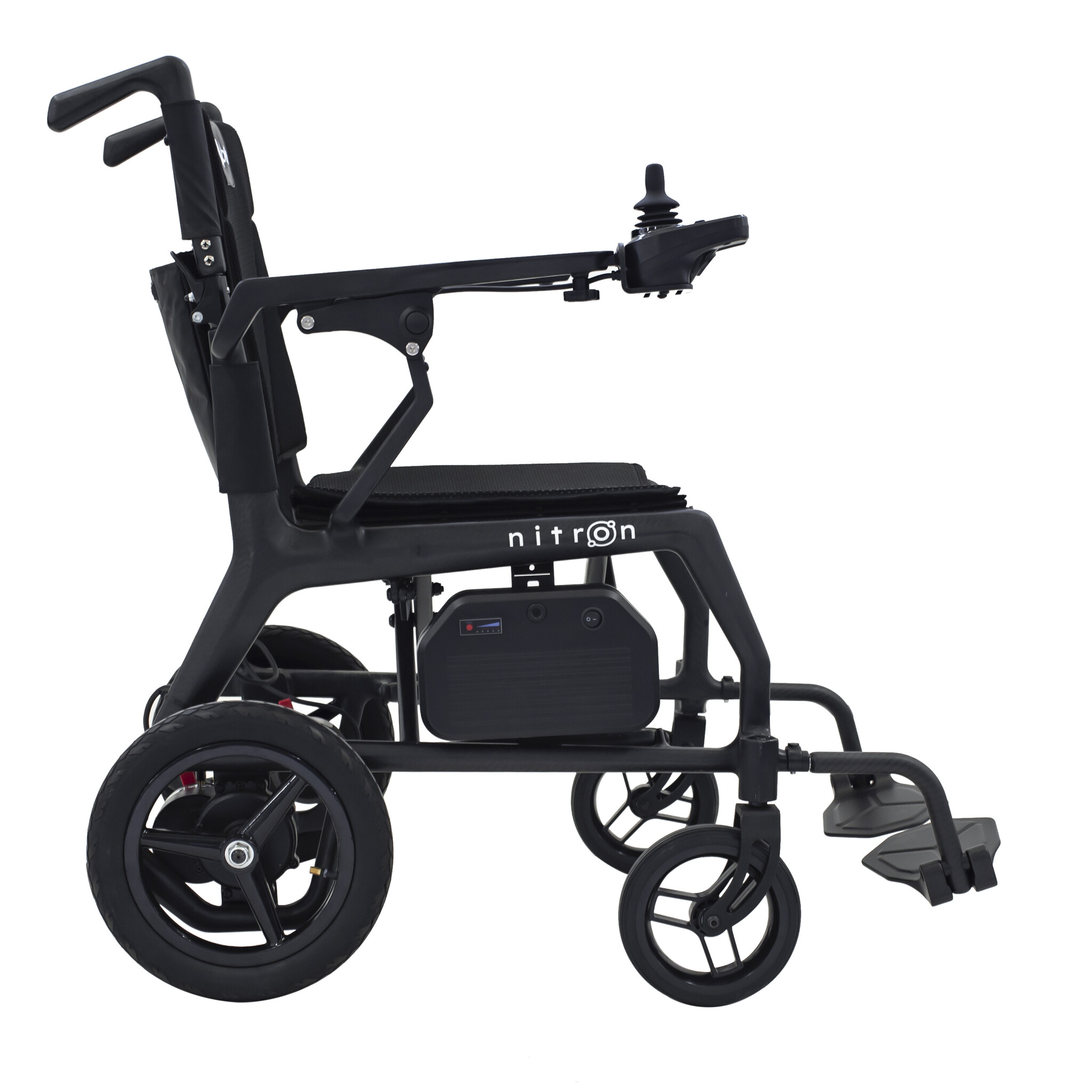 De opklapbare armleuningen zorgen voor eenvoudige transfers en extra gebruiksgemak. Elk detail van de Nitron is ontworpen met het oog op comfort, functionaliteit en modern design – voor gebruikers die geen compromis willen sluiten tussen mobiliteit en stijl.