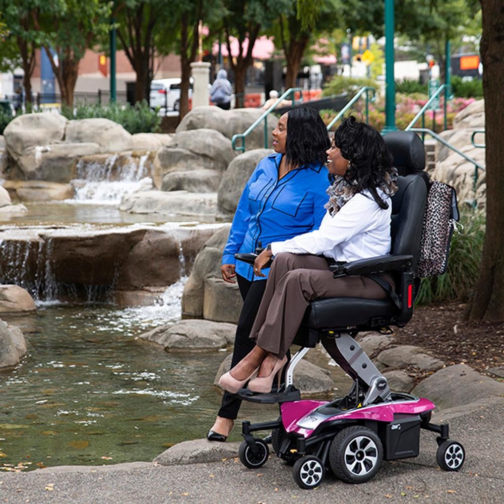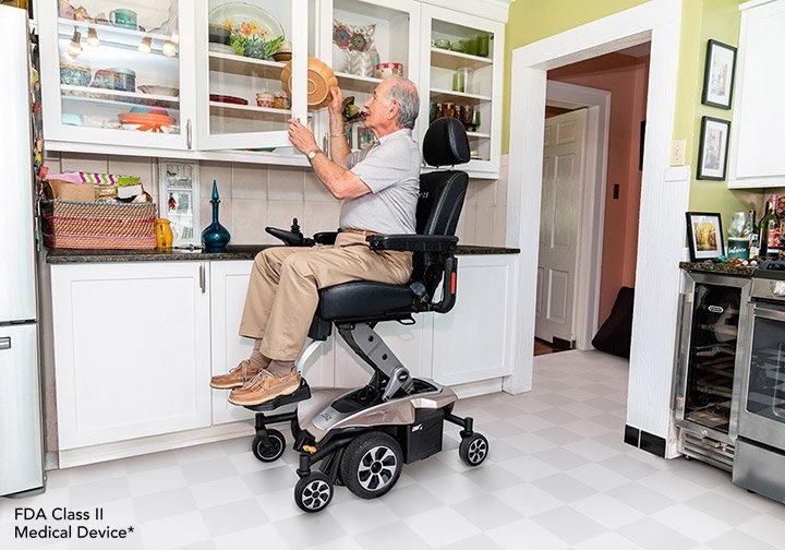 De Pride Jazzy Air 2 is een innovatieve elektrische rolstoel met een unieke elektrische liftfunctie. Met één druk op de knop gaat de stoel in slechts 11 seconden 30 cm omhoog, zodat u eenvoudig op ooghoogte kunt communiceren. Zelfs in verhoogde positie blijft de rolstoel stabiel rijden tot 6,4 km/u.