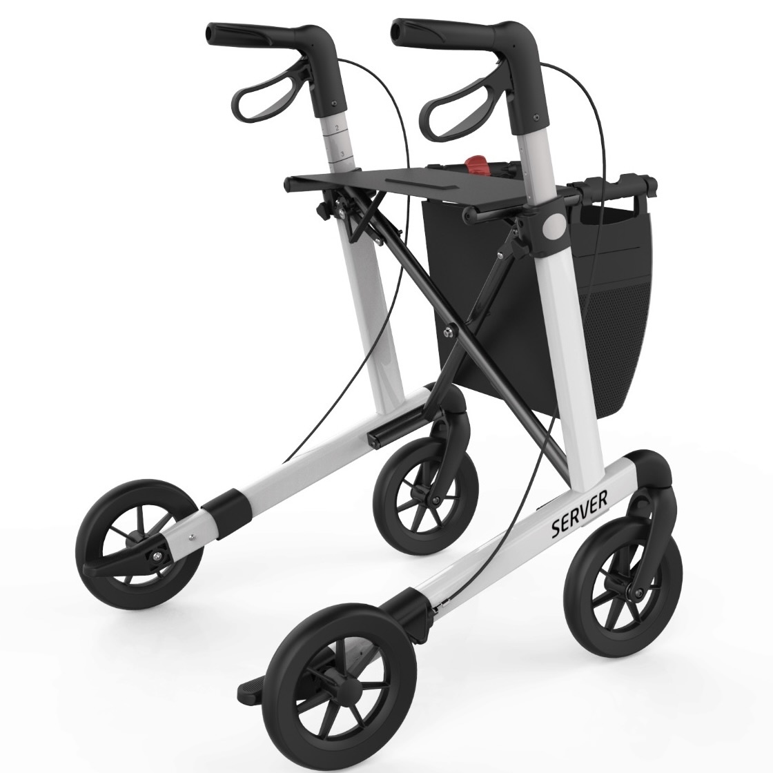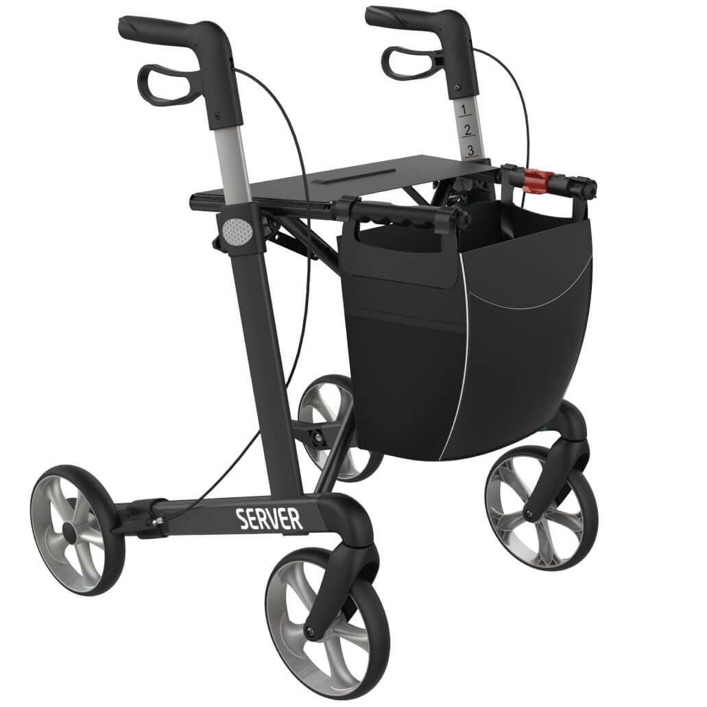 De stijlvolle Server rollator heeft een uniek driehoekig profiel en een vast gelast frame. Het is met een eigen gewicht van 7 kg één van de lichtste rollators op de markt in de categorie gebruikers tot een maximaal gewicht van 150 kg.