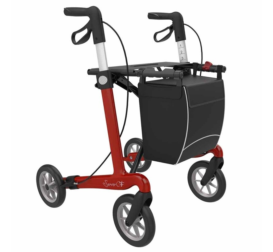 Wat direct opvalt aan de Server CF is het stijlvolle ontwerp in moderne kleuren als zwart, rood, paars en antraciet. De opvouwbare constructiemaakt hem zeer compact in te klappen, ideaal voor vervoer in de auto of het opbergen in kleine ruimtes. Zelfs ingeklapt blijft de rollator stabiel dankzij de ingebouwde vergrendeling. Dit maakt hem perfect voor actieve gebruikers die regelmatig onderweg zijn.