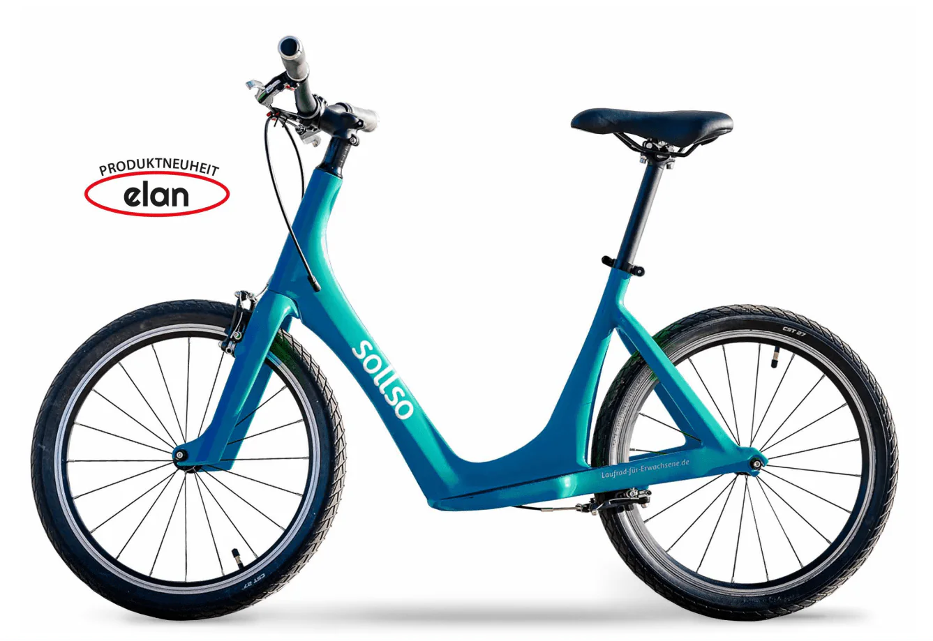 De sollso® Elan is een loopfiets voor volwassenen met een sportief ontwerp. Het carbon frame is extreem stijf en zorgt voor directe krachtoverbrenging bij elke stap. Ondanks de hoge stabiliteit is de fiets uitzonderlijk licht.