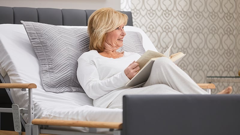 De zijrails dienen zowel als veiligheidshekken als als steun bij transfers. Hiermee behoudt de gebruiker meer zelfstandigheid en vertrouwen.Zitpositie in bed (in-bed seated mode)