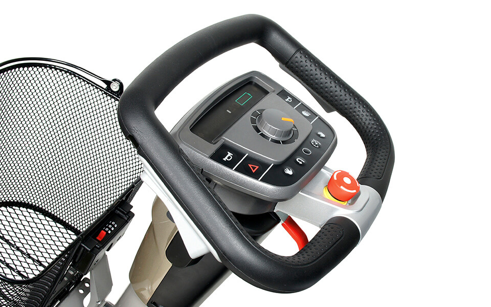 Kies uit vingertop-, hand- of voetbediening om de Trophy exact af te stemmen op uw mobiliteitsbehoeften. Het verlichte LCD-display geeft snelheid, accu-status en kilometerteller duidelijk weer, terwijl automatische snelheidsreductie in bochten de stabiliteit verhoogt. Krachtige LED-koplampen, richtingaanwijzers en een geïntegreerd remlicht maken u dag en nacht zichtbaar; elektromagnetische remmen grijpen direct aan zodra u het gashendel loslaat.