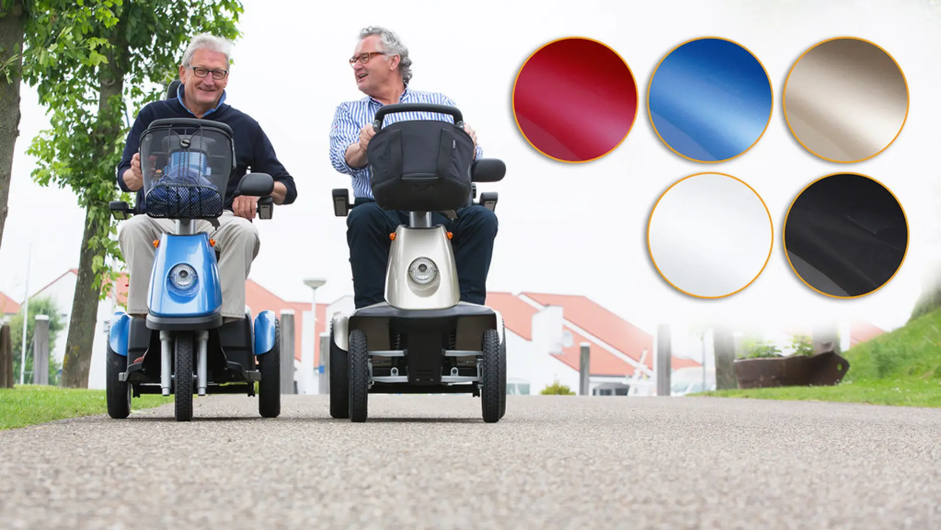 Personaliseer uw Trophy met vijf metallic kleuren—Sparkling Champagne, Graphite Black, Moonstone Blue, Metallic Red of Platinum White—en breid hem uit met praktische opties zoals een voor- of achtermand, stok-/krukhouder, spiegels of anti-tip-wielen. Dankzij een maximaal gebruikersgewicht van 160 kg en keuze uit 3- of 4-wielconfiguraties is er altijd een uitvoering die naadloos aansluit op uw lichaam, rijstijl en omgeving.