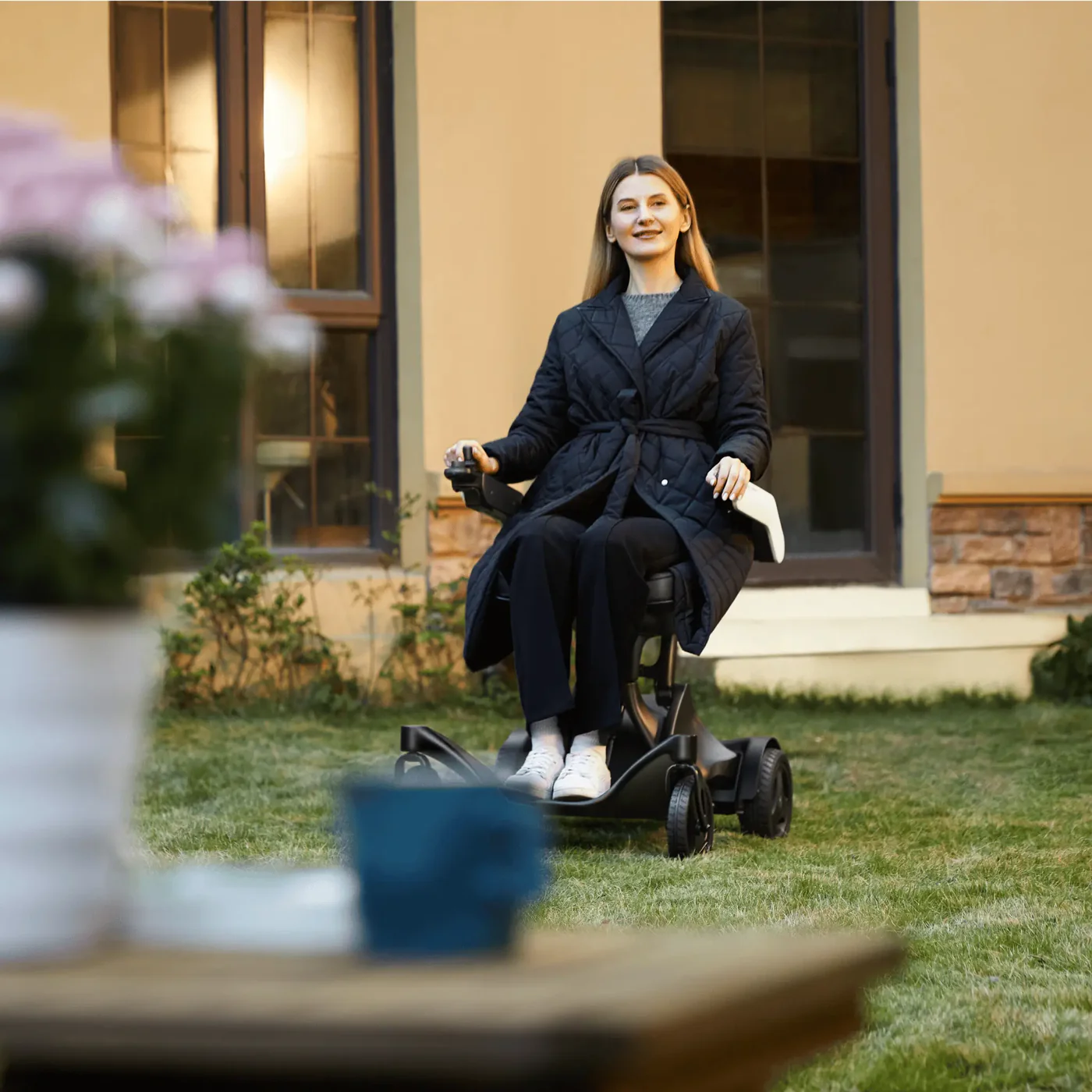 Slimme joystickbesturing (links/rechts instelbaar) – Geschikt voor binnen én buitengebruik.