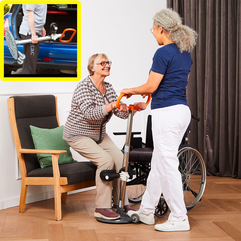 Een veilige transfer is gegarandeerd met de Etac Turner Pro, waardoor valpartijen worden voorkomen en de belasting voor de hulpverlener wordt verminderd.