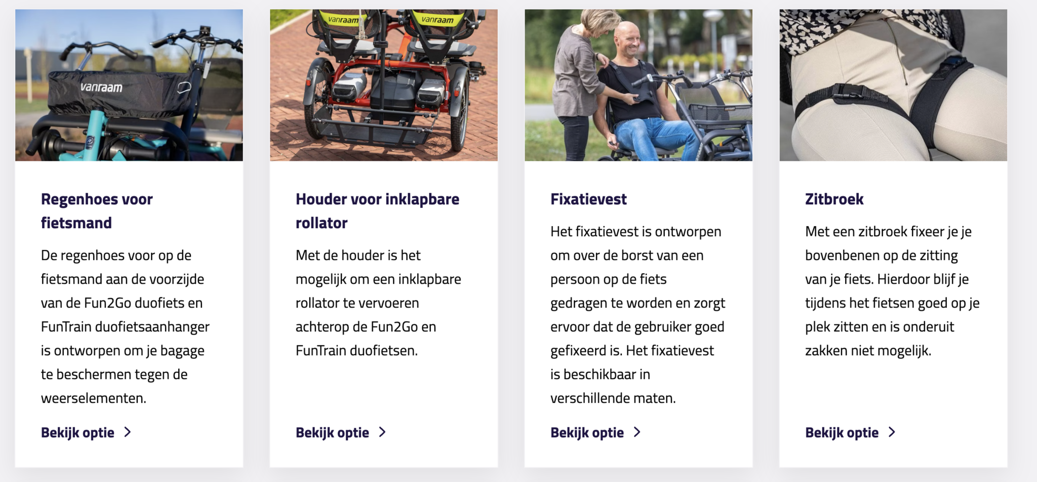 Stel je voor: de zon schijnt, de vogels fluiten en jij fietst lachend naast je partner, moeder, vriend of zorgbegeleider. Geen haast, geen zorgen, gewoon samen genieten van de omgeving, de wind door je haar en het heerlijke gevoel van vrijheid. De Van Raam Fun2Go is meer dan een fiets – het is een uitnodiging om het leven samen te beleven.
