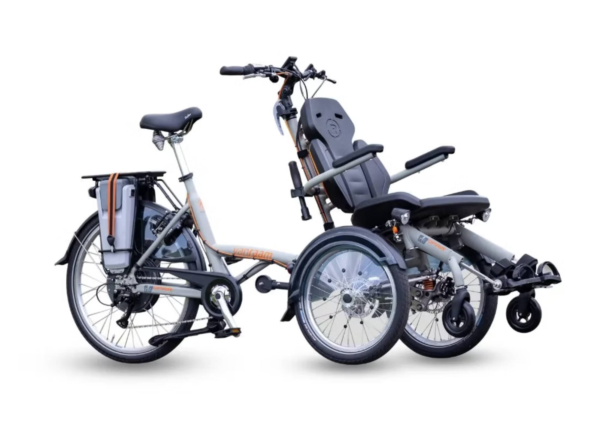 De Van Raam OPair is een comfortabele en stabiele elektrische rolstoelfiets waarbij de passagier veilig voorop zit. Een betrouwbaar alternatief voor een scootmobiel of elektrische rolstoel. Nieuw geleverd met fabrieksgarantie en service.